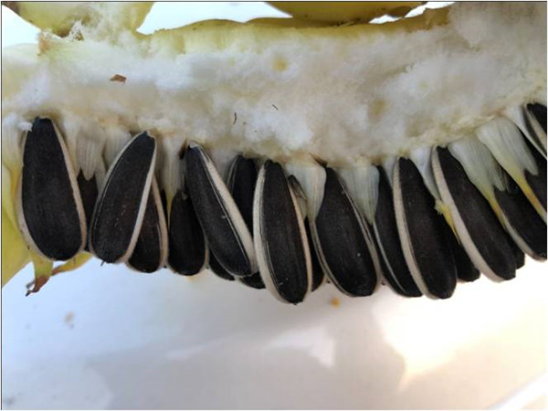 5、適期收獲,當(dāng)花盤背部發(fā)黃、苞葉呈黃褐色,下部葉片干枯脫落,一般在花期結(jié)束后35至40天收獲。