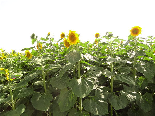 4、適期灌水,向日葵苗期耐旱,以中耕鋤草保墑促根壯苗為主,現(xiàn)蕾后要及時(shí)灌水,追肥,在成熟期灌水,要避開大風(fēng),避免倒伏。
