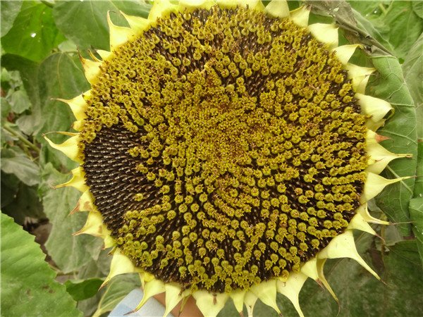 5、適期收獲,當(dāng)花盤背部發(fā)黃、苞葉呈黃褐色,下部葉片干枯脫落,一般在開花后35~40天收獲。