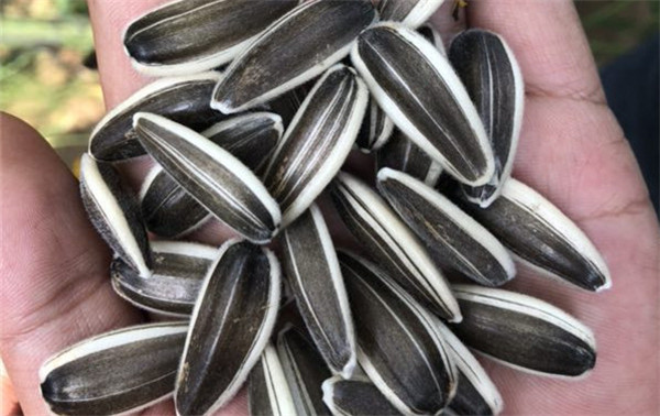 食葵,晚熟品種,平均生育期120天左右。株高2.2~2.6米,平均盤徑24~25厘米,花盤傾斜度4~5級,結(jié)實(shí)率85%左右。葉色中綠,植株健壯,開花期長,花盤平整。籽粒黑底白邊,平均粒長2.55厘米左右,稀植時(shí)更顯粒長優(yōu)勢。