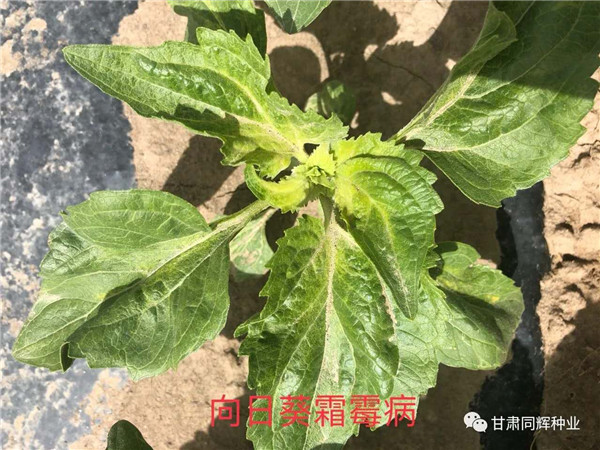 向日葵花苗期病害主要是霜霉病,表現(xiàn)為葵花在2-3對真葉時,出現(xiàn)正面葉脈褪綠、斑塊,背面出現(xiàn)白色絨線狀霉層,節(jié)縮、株矮、莖變粗?僧用精甲霜靈50ml,兌水15kg進行噴施。
