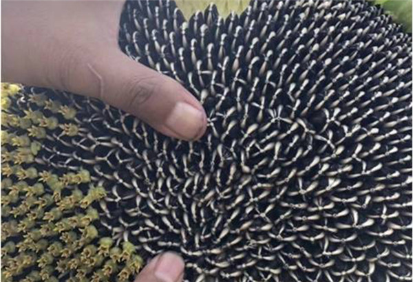 5、適期收獲,當(dāng)花盤(pán)背部發(fā)黃、苞葉呈黃褐色,下部葉片干枯脫落,一般在花期結(jié)束后35至40天收獲。