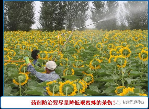 向日葵是蟲媒花,病蟲害防治藥劑容易殺死蜜蜂等傳粉昆蟲,造成授粉不好而空殼秕籽,因此,田間噴施殺蟲劑尤其在開花期進(jìn)行農(nóng)藥噴施,更需要注意以下事項: