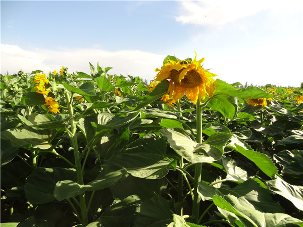 4、適期灌水,向日葵苗期耐旱,以中耕鋤草保墑促根壯苗為主,現(xiàn)蕾后要及時灌水,追肥,在成熟期灌水,要避開大風,避免倒伏。